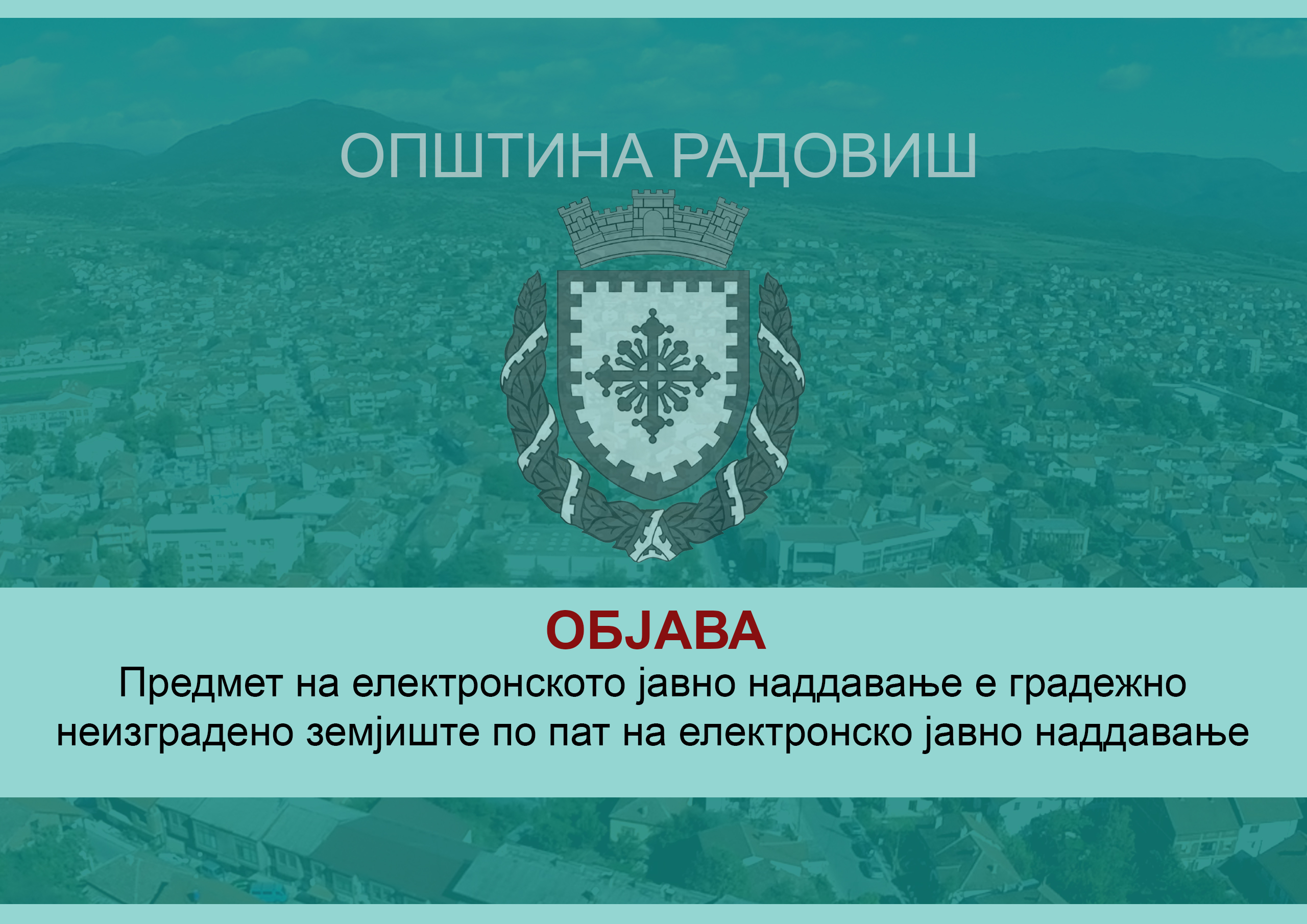 ОБЈАВА број 1/2022 од 05.09.2022 година за отуѓување на градежно земјиште сопственост на Република Северна Македонија по пат на електронско јавно наддавање во Општина Радовиш