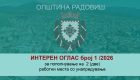 Врз основа на член 22 став 1 точка 6 од Законот за локална самоуправа (“Службен весник на РМ” бр. 5/02), член 43 од Статутот на општина Радовиш (“Службен гласник на општина Радовиш” бр. 5/02), на ден 30.08.2022 год. Градоначалникот на општина Радовиш објавува,