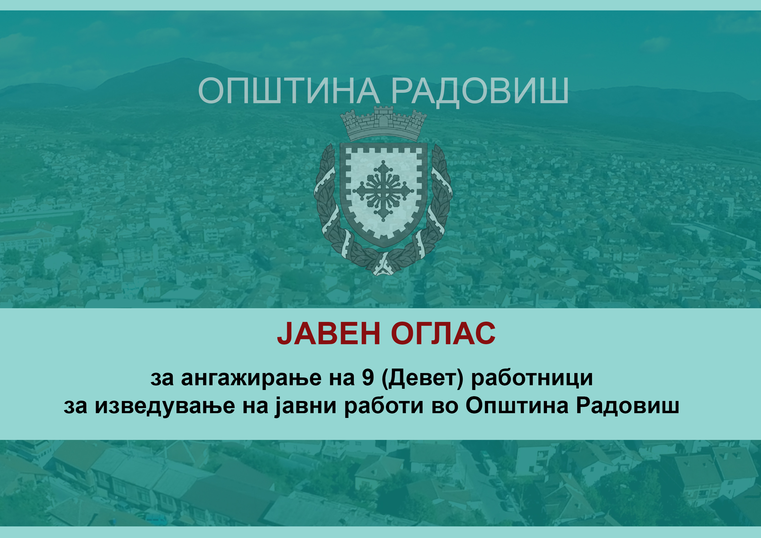за ангажирање на 9 (Девет) работници за изведување на јавни работи во Општина Радовиш за период од 12 месеци