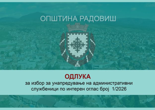 Одлука за избор за унапредување на административни службеници по интерен оглас број 1/2026