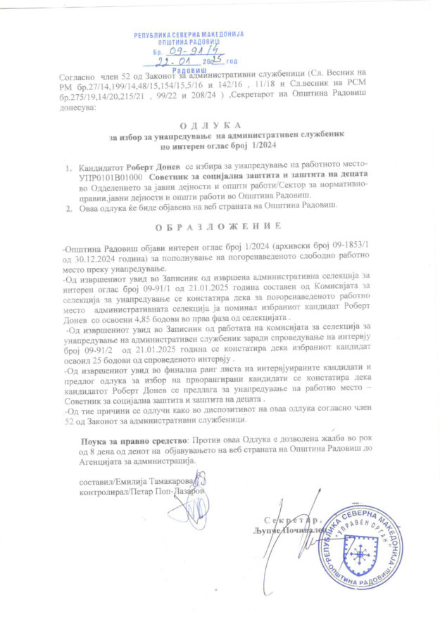 Градоначалникот на општина Радовиш Aцо Ристов, денес одржа прием на лицата кои за празникот Богојавление – Водици ги фатија светите крстови во населените места во општина Радовиш. Посакувајќи им многу здравје, среќа, бериќет и успеси на секое поле, Градоначалникот на лицата им подари паметни часовници. Наградени беа следните момчиња: Филип Глигоров (Раклиш) Васе Василев (Ораовица)…