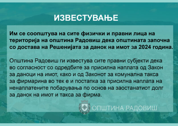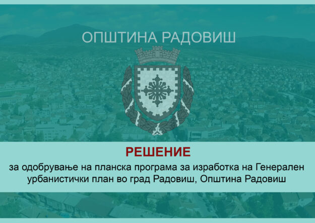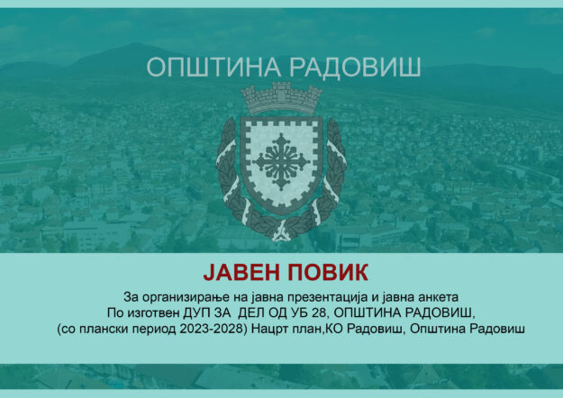 Врз основа на член 29 и член 50 од Законот за урбанистичко планирање („Сл. в. на РМ“ бр. 32/20 и 111/23), член 50 точка 3 од Законот за локална самоуправа („Сл. в. на РМ“ бр.5/02) и донесената Годишна програма за изработка на урбанистички планови на Општина Радовиш за 2024 год. со Одлука бр.08-287/1 од 09.02.2024година,…