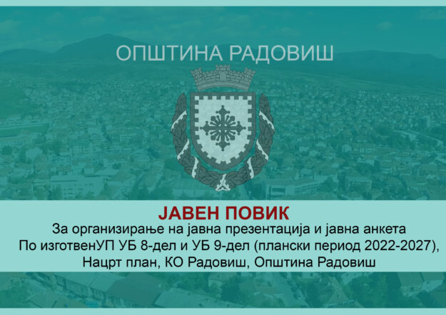 ЈАВЕН ПОВИК За организирање на јавна презентација и јавна анкета По изготвен ДУП УБ 8-дел и УБ 9-дел (плански период 2022-2027)