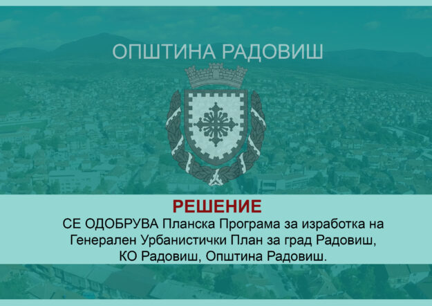 бр. 26 -915/12 18.09.2023 год Врз основа на член 29 и член 50 од Законот за урбанистичко планирање („Сл. в. на РМ“ бр. 32/20 и 111/23), член 50 точка 3 од Законот за локална самоуправа („Сл. в. на РМ“ бр.5/02) и донесената Годишна програма за изработка на урбанистички планови на Општина Радовиш за 2023…