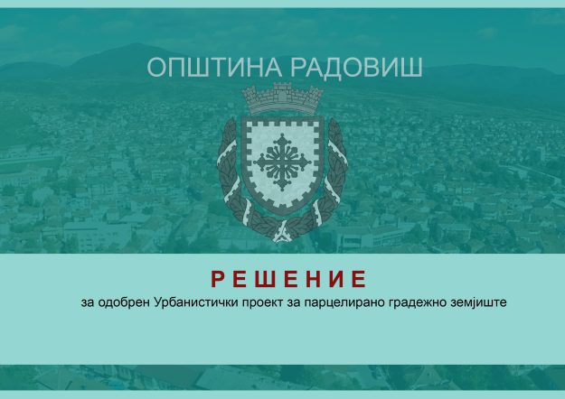 Потврда за заверка на одобрен Урбанистички проект со план на парцелација за градежни парцели А12, А13, А14, А15, А16, А17, A.18 и А20 од ДУП УБ 15, Општина Радовиш